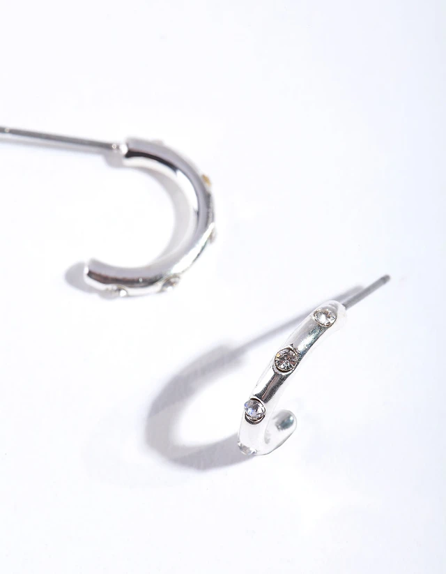 Silver Diamante Detail Hoop Earring Pack