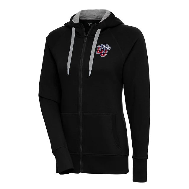 Women's Antigua Black Liberty Flames Victory Full-Zip Hoodie