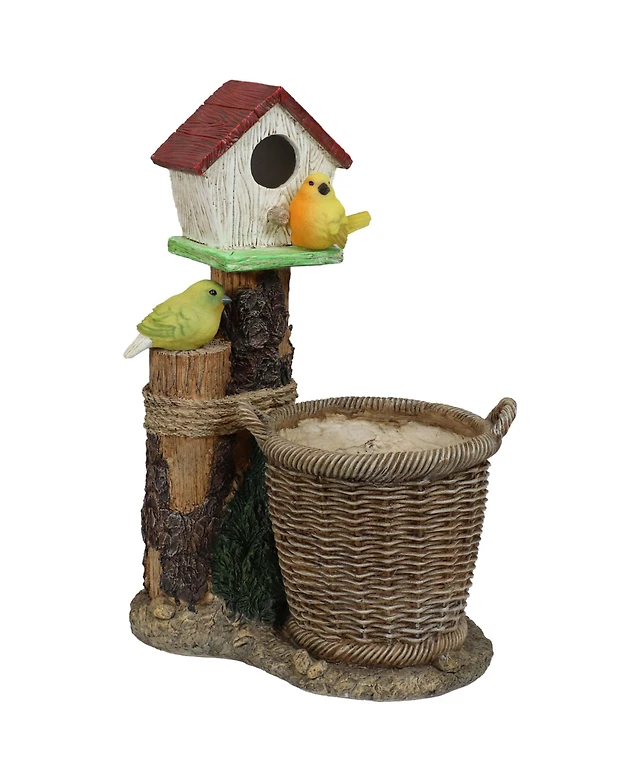 Polyresin Bird House Planter Statue with Solar Led Lighted Birds - 17.25"