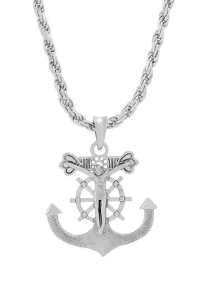 Anchor Pendant with 22" Rope Chain in Gold Over Sterling Silver