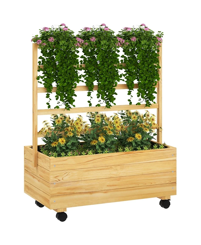 Outsunny Outdoor Planter with Trellis Wooden Box,