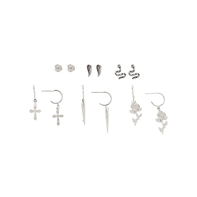 Multi-Pack Silver Grunge Earrings - 9 Pack