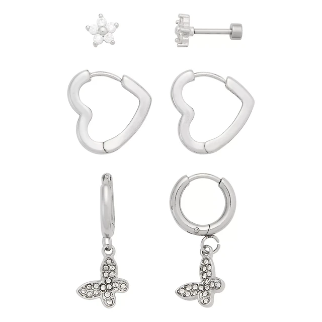 Multi-Pack Crystal Moth Wings Stud and Dangle Earrings - 9 Pair