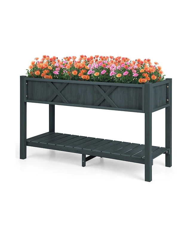 Gymax 2-Tier Raised Planter Garden Wooden Bed w/ 2 Cylindrical Planter Boxes