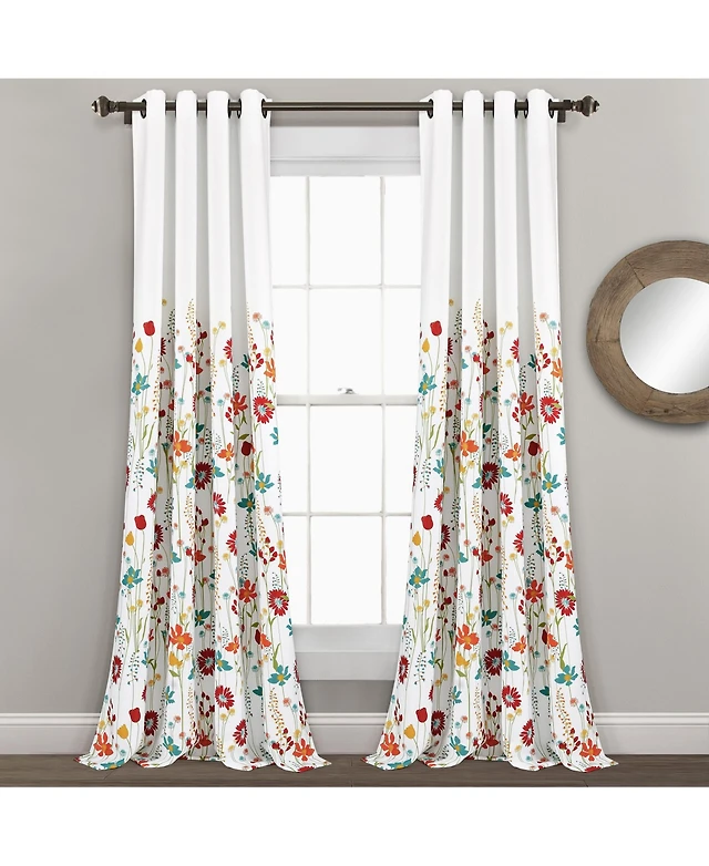 Ruffle Flower Window Curtain Panels White 42X84 Set