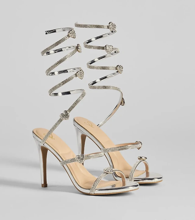 Feelin' Glam Rhinestone Spiral Strap Block Heels