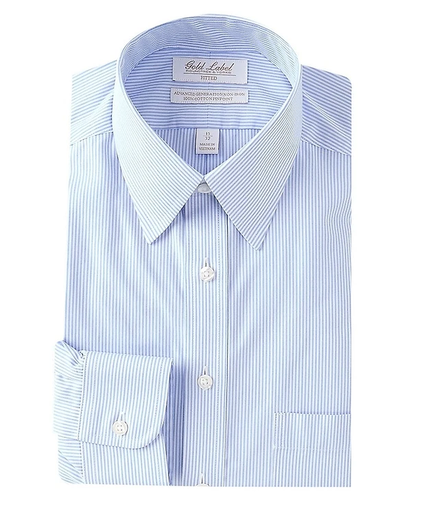 Gold Label Roundtree & Yorke Fitted Non-Iron Point Collar Striped Dress Shirt
