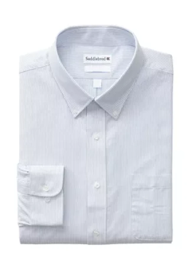 Gold Label Roundtree & Yorke Big & Tall Denton Slim Fit Non-Iron Spread Collar Striped Dress Shirt