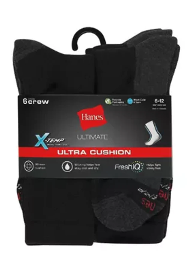 Ultimate X-Temp Ultra Cushion 6 Pack Crew Socks