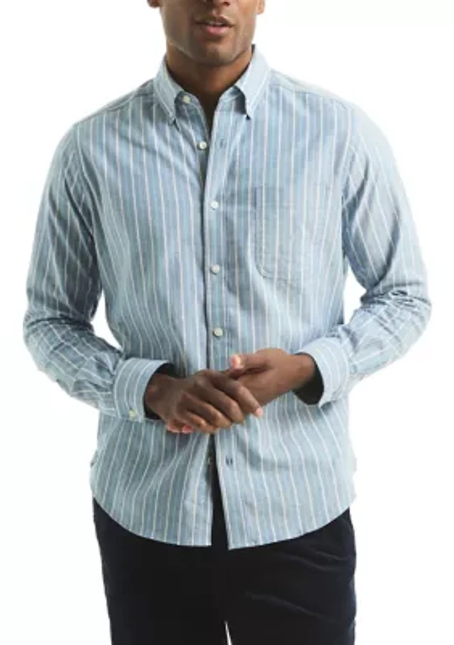 Big & Tall Long Sleeve Oxford Stripe Button Up Shirt