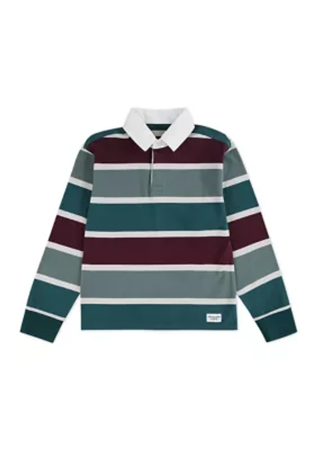 long sleeve rugby stripe polo shirt