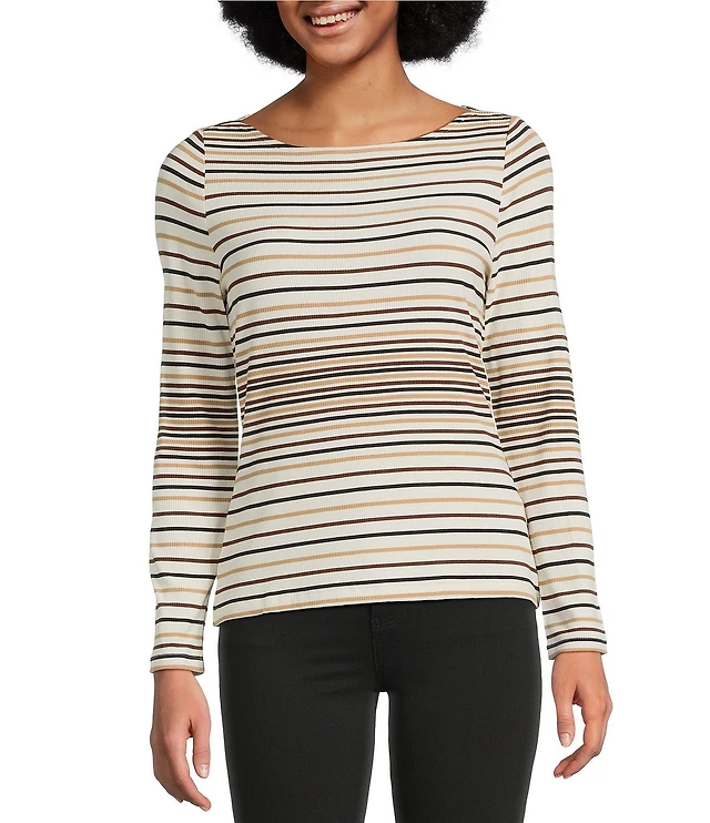 Gibson & Latimer Stripe Knit Boat Neck Long Sleeve Tee Shirt