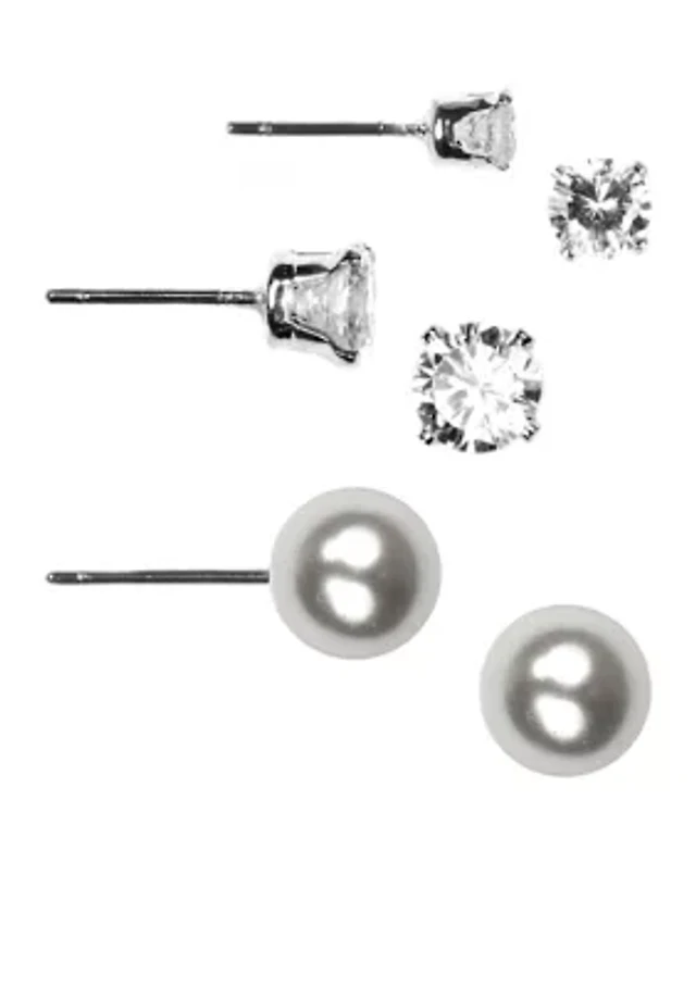 Multi-Pack Round CZ Goldtone Stud Earrings - 3 Pair