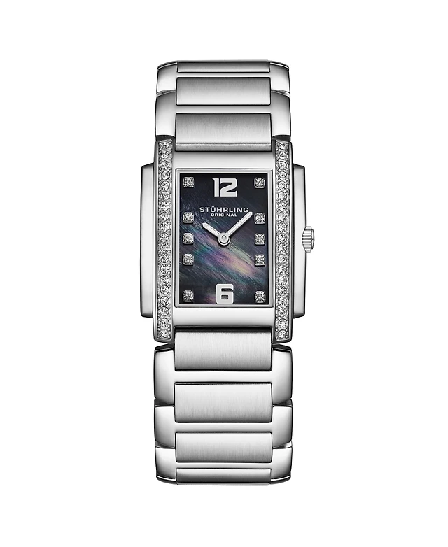 Stuhrling 4084 Modern Rectangular Bracelet Watch – Sunray Dial, Date Display