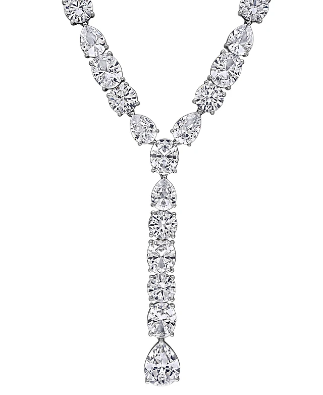 White Lab-Created Sapphire "X" Drop Necklace in Sterling Silver