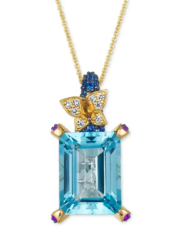 Le Vian Green Apple Peridot (1-1/8 ct. t.w.) & Diamond (1/5 ct. t.w.) Trillion Halo Adjustable 20" Pendant Necklace in 14k Gold