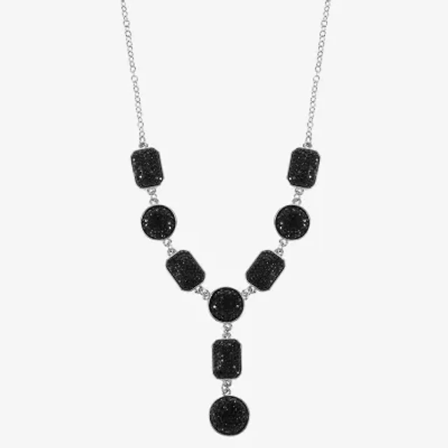 2028 Silver-Tone Black Crystal Cross Chain Necklace