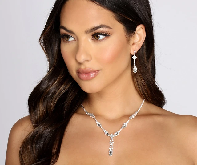 Drop Stone Dainty Rhinestone Necklace Set