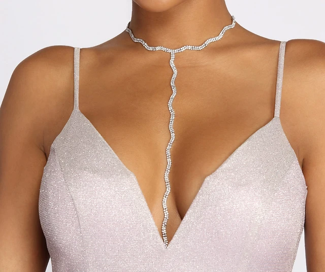 Let's Get Wavy Rhinestone Lariat Choker Necklace