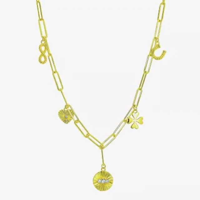 Tarnish Resistant 14k Yellow Gold Plated 5-Leaf Clover Station Necklace