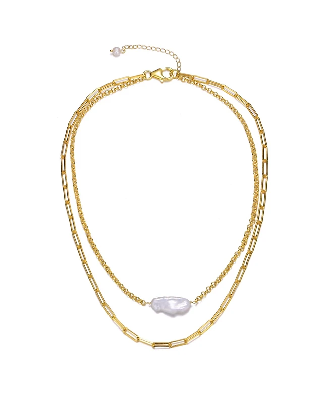 Waterproof Gold Plated Stainless Steel Cubic Zirconia Necklaces 2-Pack