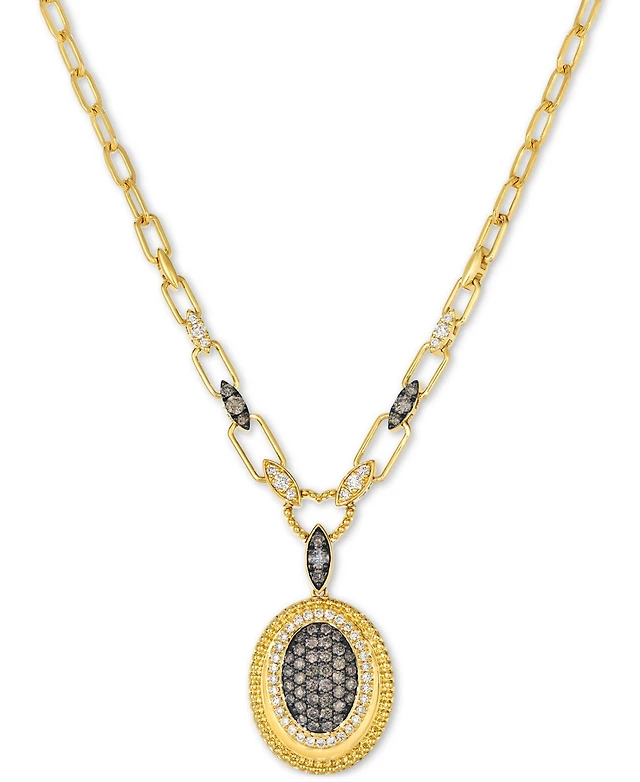 Le Vian Chocolate Diamond & Nude Diamond Halo Cluster Paperclip Link 19" Pendant Necklace (3/4 ct. t.w.) in 14k Gold