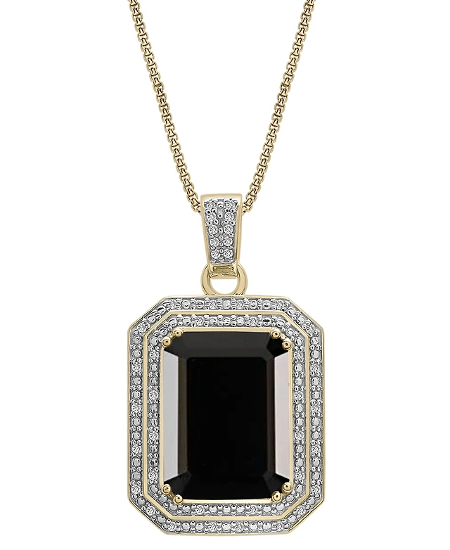 Womens 1 3/4 CT. T.W. Black Agate Sterling Silver Clover Paperclip 17 Inch Pendant Necklace