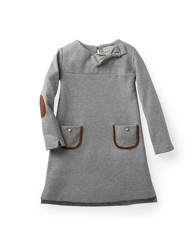 Hope & Henry Little and Big Girls' Organic Puff Sleeve Bow Detail Intarsia Sweater Dress