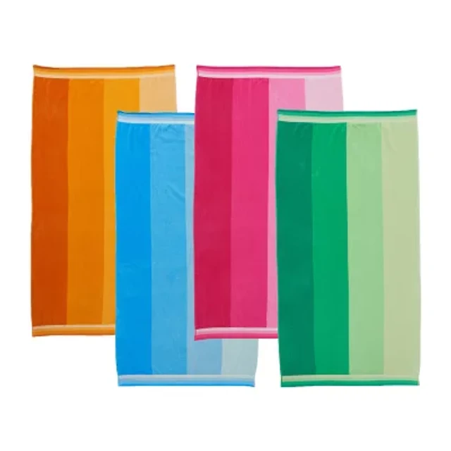 4-Pack Cabana Stripe Beach Pool Towels - 100% Absorbent Cotton, 35 X 65