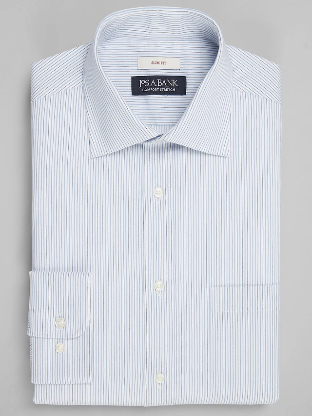 Men's Jos. A. Bank Slim Fit Spread Collar Stripe Dress Shirt at Jos. A. Bank, Blue