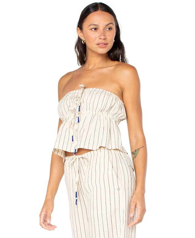 John Galt White & Light Blue Striped Amelia Cropped Tube Top