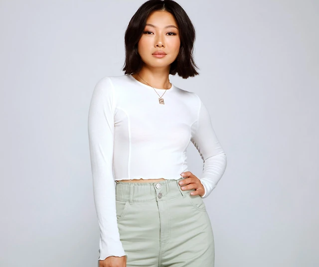 Chic Factor Asymmetrical Long Sleeve Crop Top