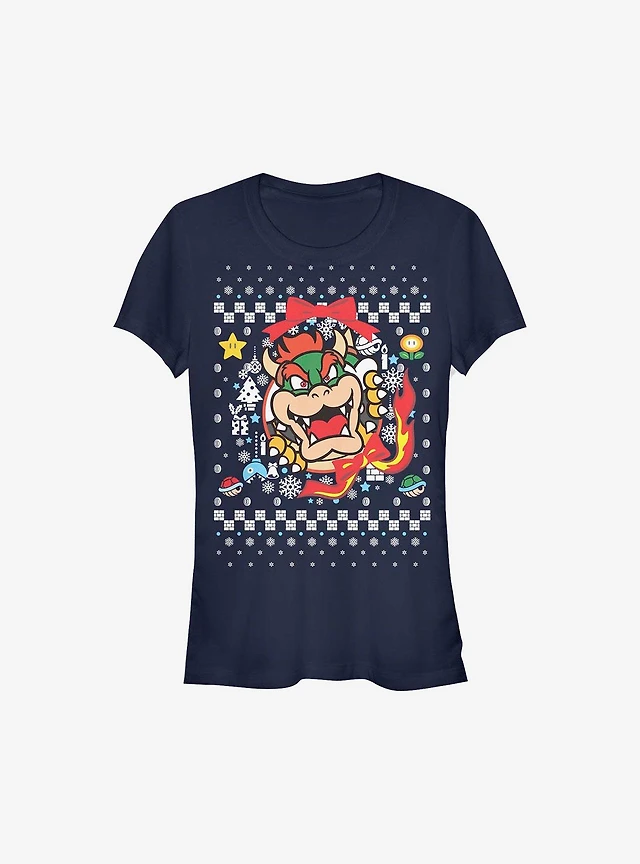 Super Mario Bowser Wreath Ugly Christmas Sweater Girls T-Shirt