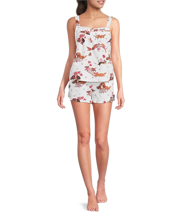BedHead Spa Day Print Short Sleeve Notch Collar Cotton Knit Cropped Pajama Set