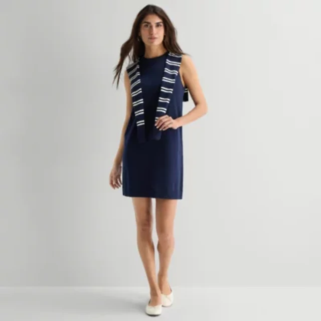 T Tahari Women's Contrast-Trim Fit & Flare Sweater Dress