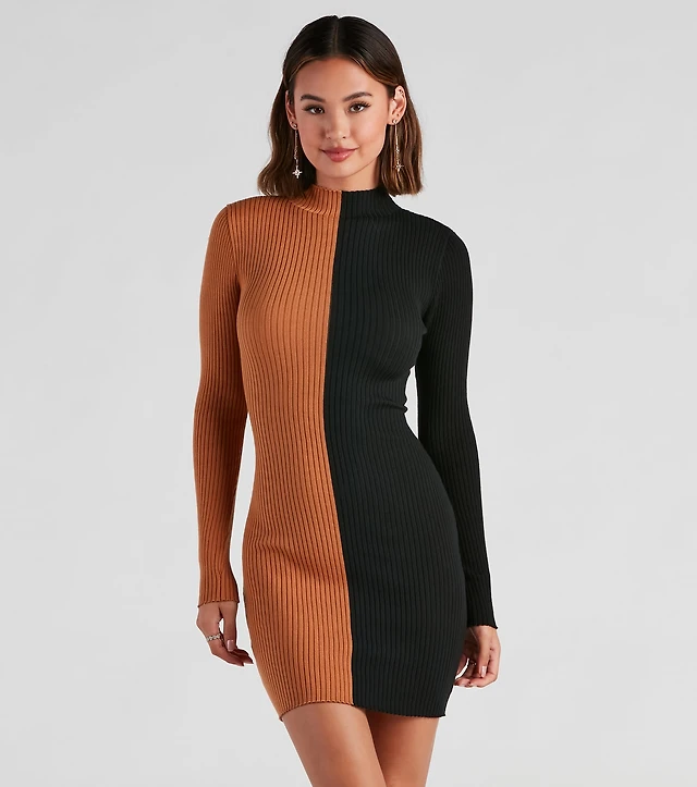 Flag and Anthem Becca Long Sleeve Textured Knit Midi Sweater Dress