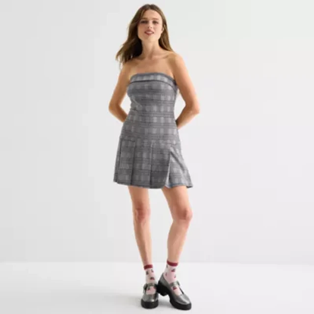 by&by Womens Juniors Sleeveless Plaid Fit + Flare Dress