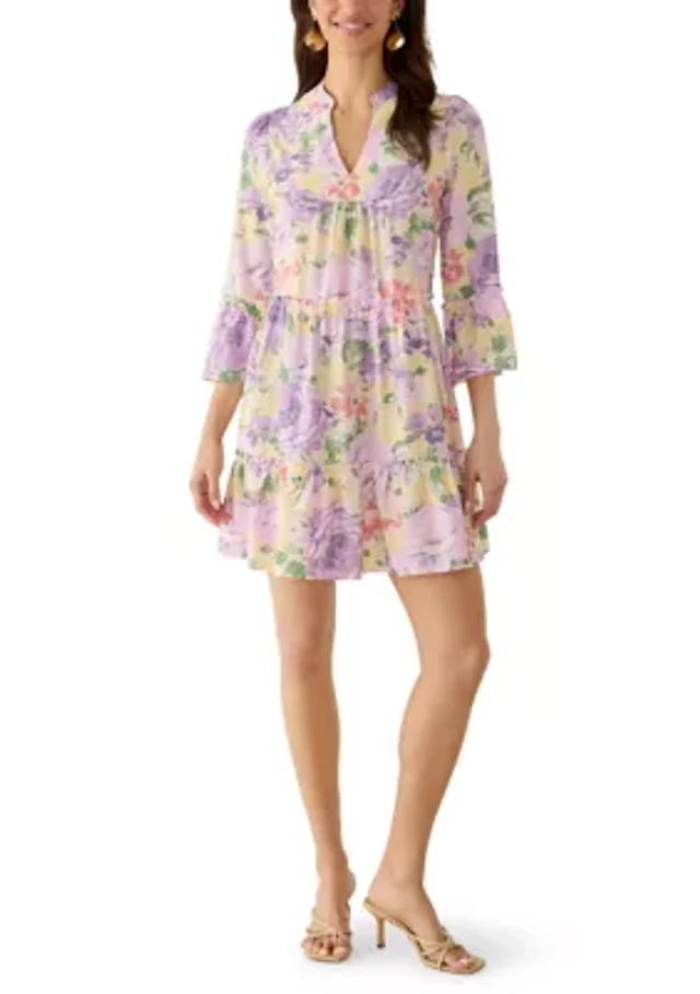 June + Vie Women's Ruffled Chiffon Mockneck Dress