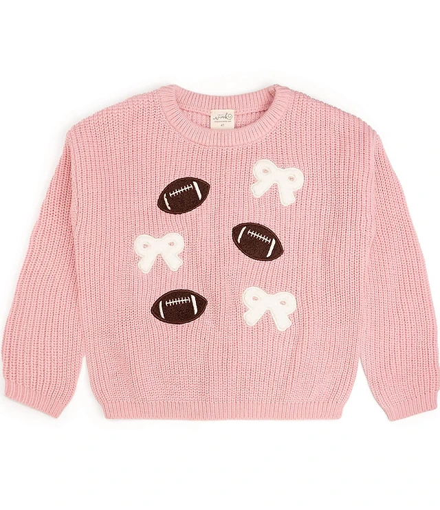Sweet Wink Little Girls Long-Sleeve Football/Bows Patches Knit Sweater