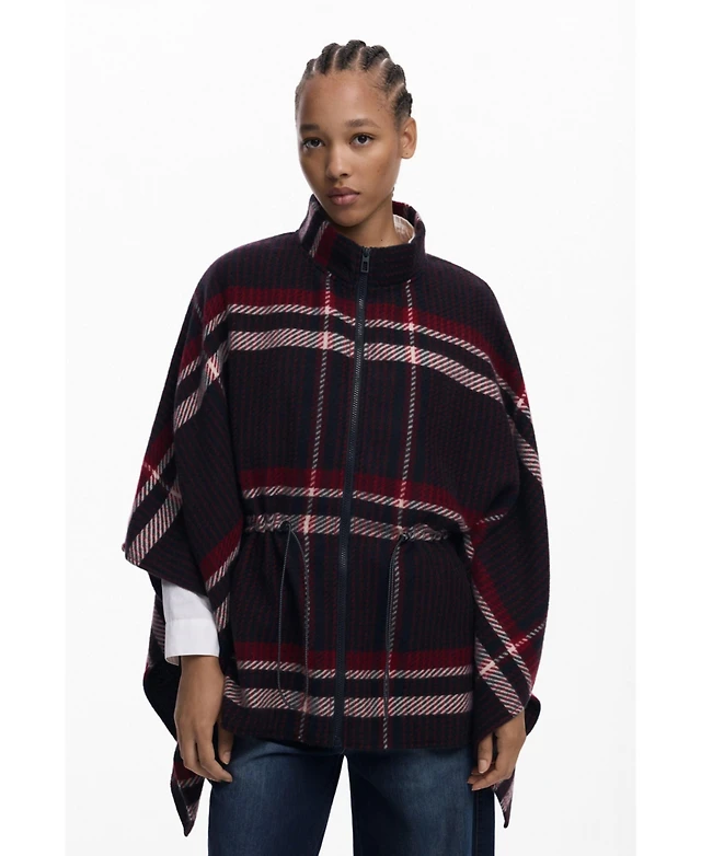 Marcus Adler Women's Plaid Poncho with Fringe Detail