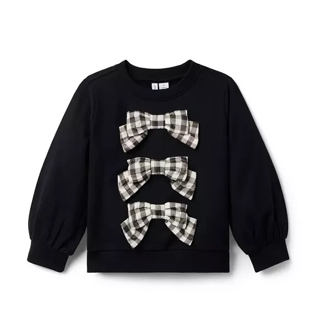 Blu Pepper Bow Print Crew Neck Long Sleeve Sweater
