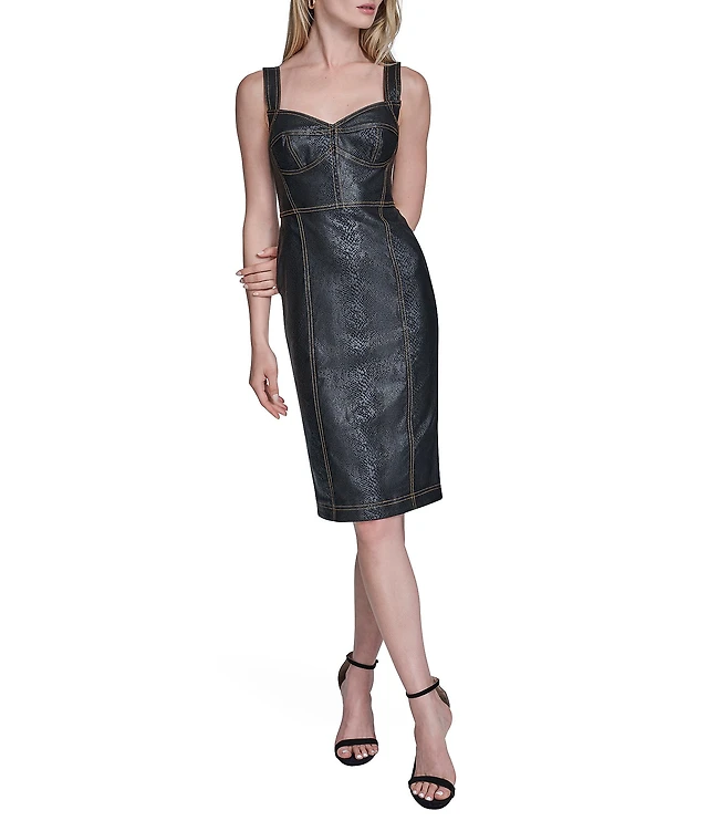 Good American Plus Size Sculpting Sweetheart Neckline Sleeveless Midi Dress
