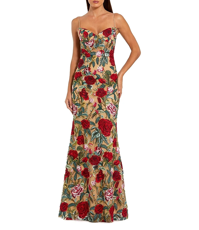 Mac Duggal 3D Flower Pleated Metallic Sweetheart Neckline Sheath Gown