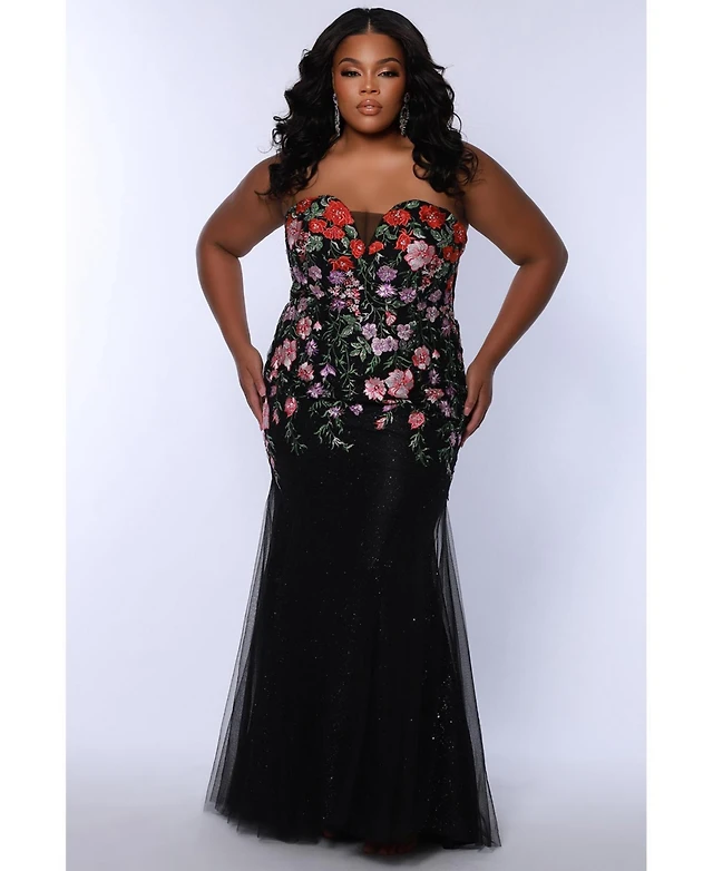 Sydney's Closet Women's Fitted Strapless Sweetheart Neckline Evening Gown
