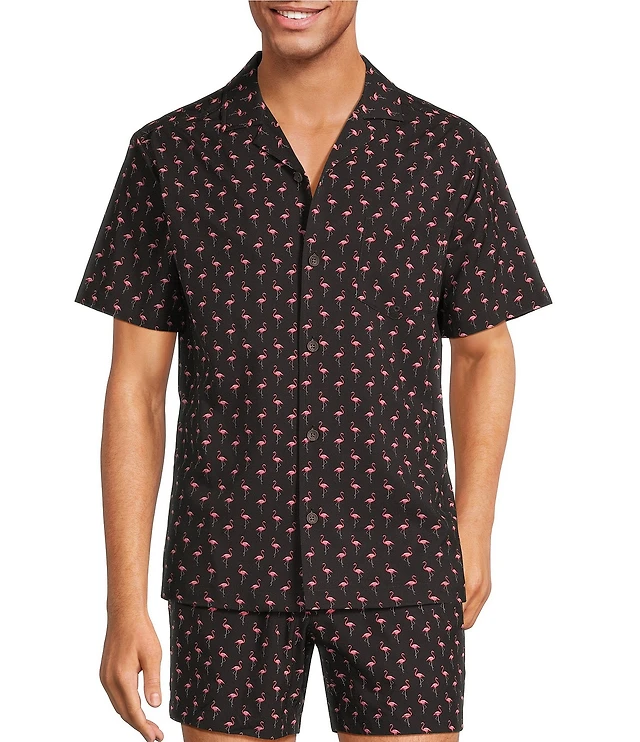Sunset x Vine Men's Flamingo-Pattern Woven Swim Trunks