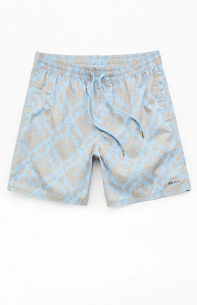 Pacsun Blue Flower Stripe 4.5" Swim Trunks