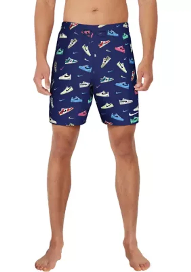 Original Penguin Men's Slim-Fit Stretch Tropical-Print 7" Swim Trunks