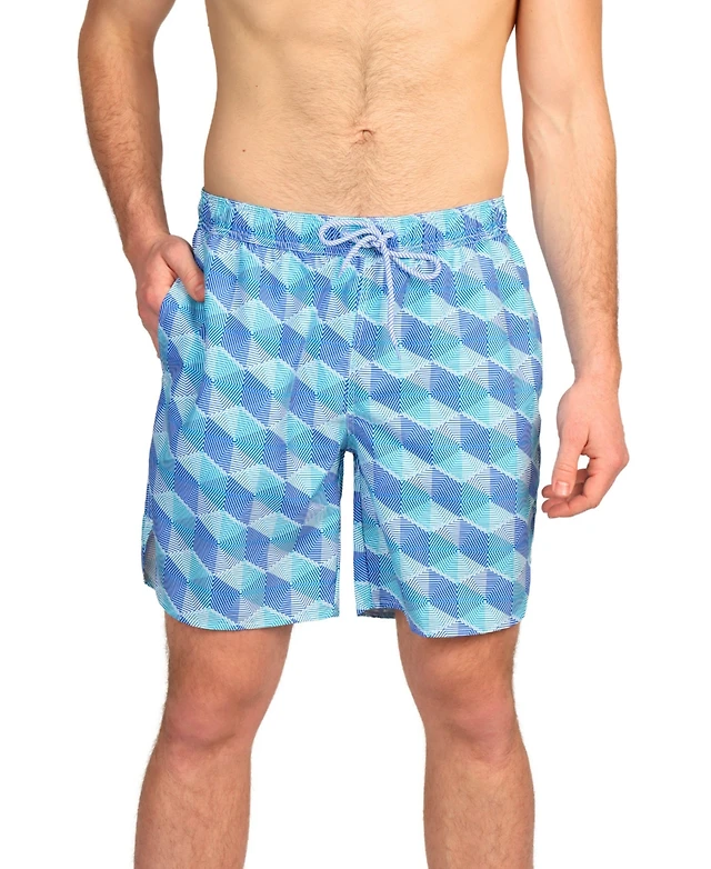 Caribbean Batik Geo 8#double; Inseam Swim Trunks