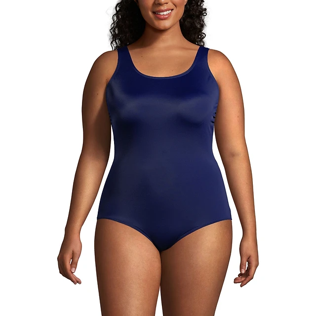 Lands' End Plus Long Chlorine Resistant Soft Cup Tugless Sporty One Piece Swimsuit