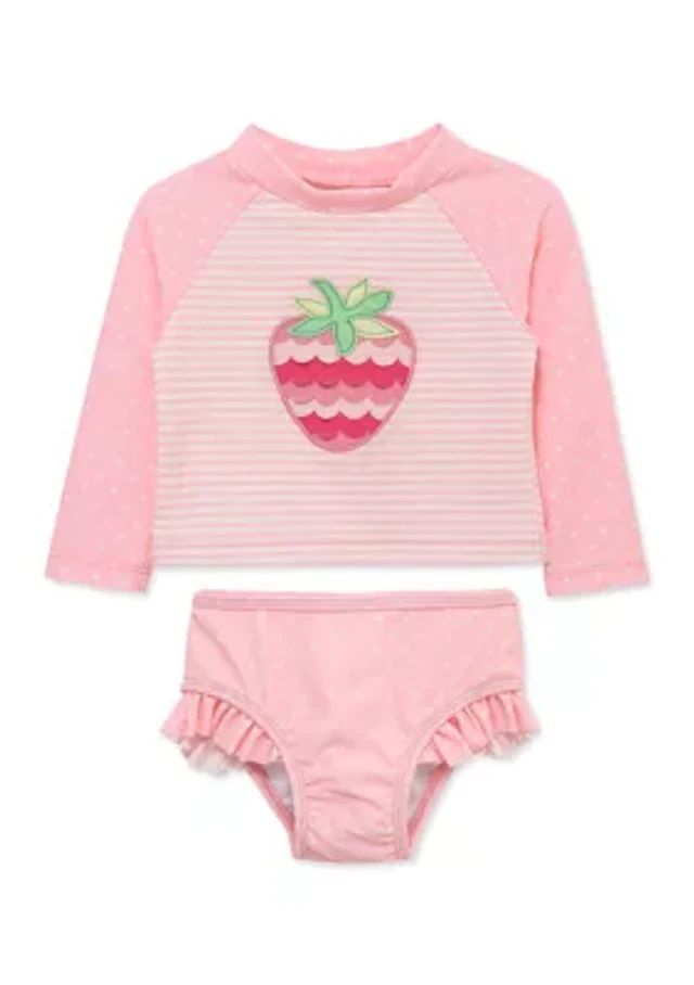 Toddler Girls Strawberry 2 Piece Rashguard Swimsuit